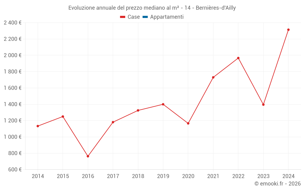 Evoluzione del prezzo mediano al m² degli appartamenti