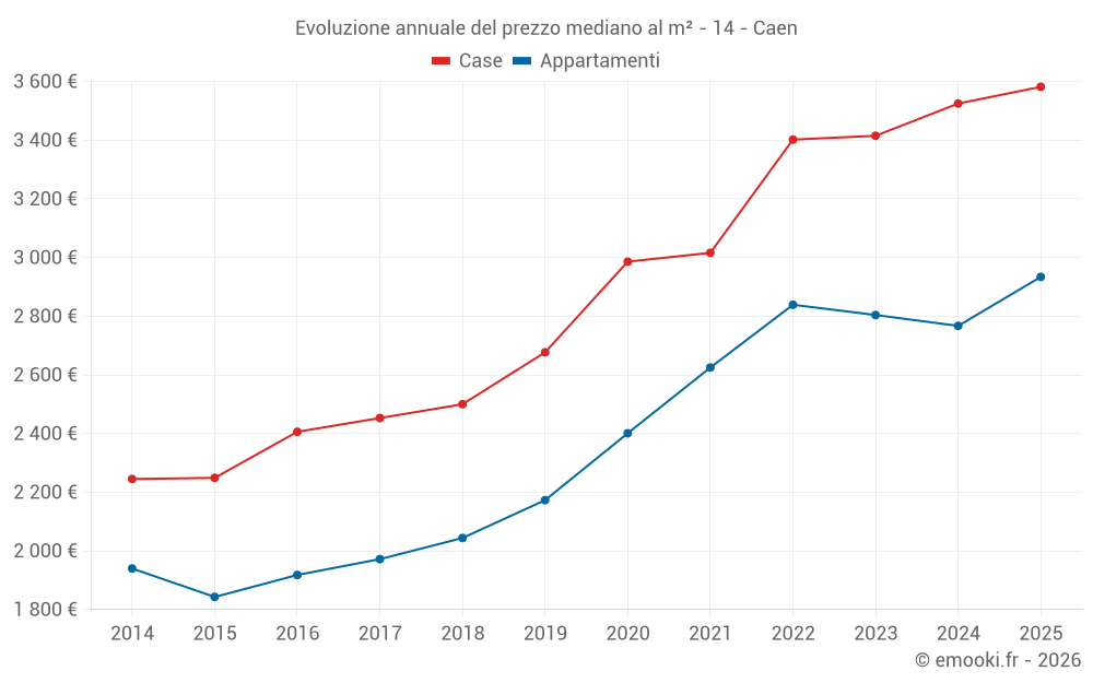 Qual è il prezzo al m2 delle case in Caen?