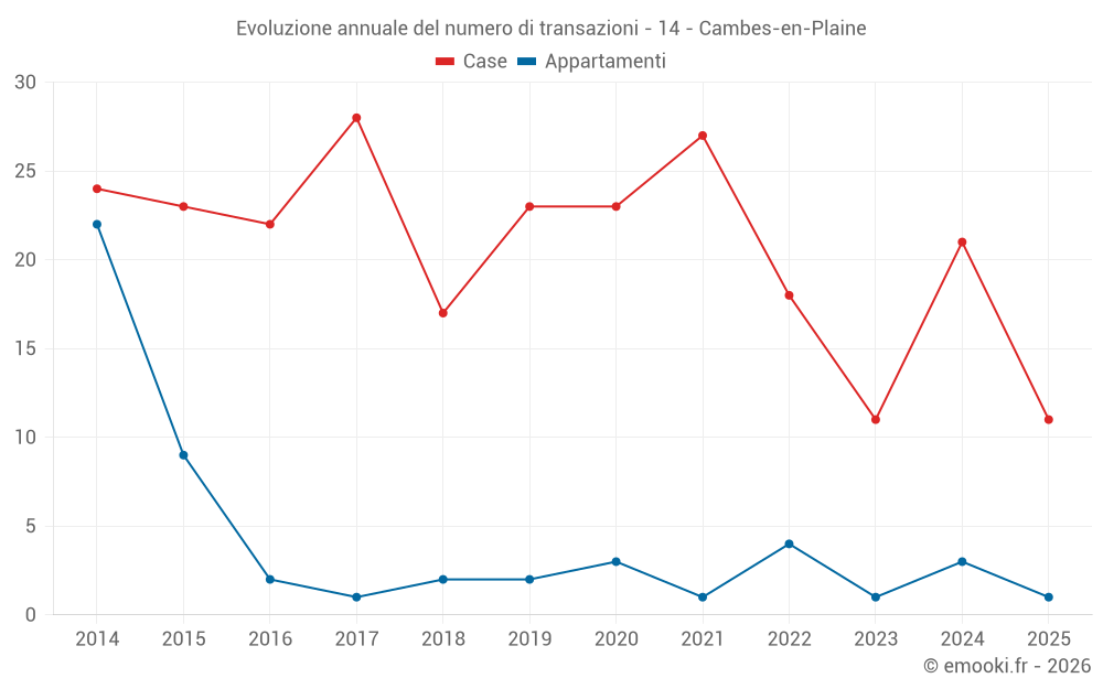 Il prezzo mediano sulle 27 transazioni di case degli ultimi 12 mesi nel comune di Cambes-en-Plaine era di 2 983 € al metro quadrato per un valore patrimoniale mediano di 330 000 €. In questo periodo il 60% delle transazioni era tra 2 503 e 3 296 € al metro quadrato (dal 2° all'8° decile).