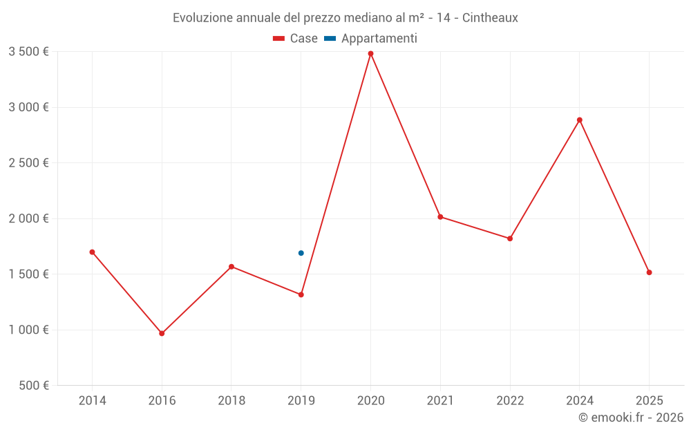 Evoluzione del prezzo mediano al m² degli appartamenti