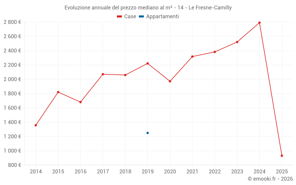 Evoluzione del prezzo mediano al m² degli appartamenti