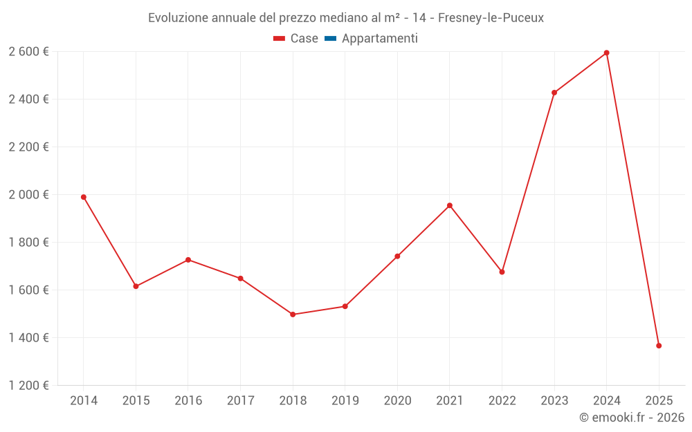 Evoluzione del prezzo mediano al m² degli appartamenti