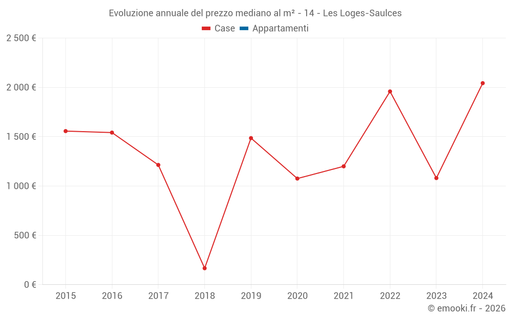 Evoluzione del prezzo mediano al m² degli appartamenti