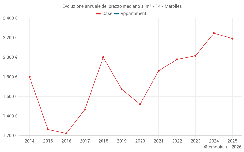 Il prezzo al m² delle case è diminuito del 2.5% da 1 anno, ma è aumentato del 79% in 9 anni.