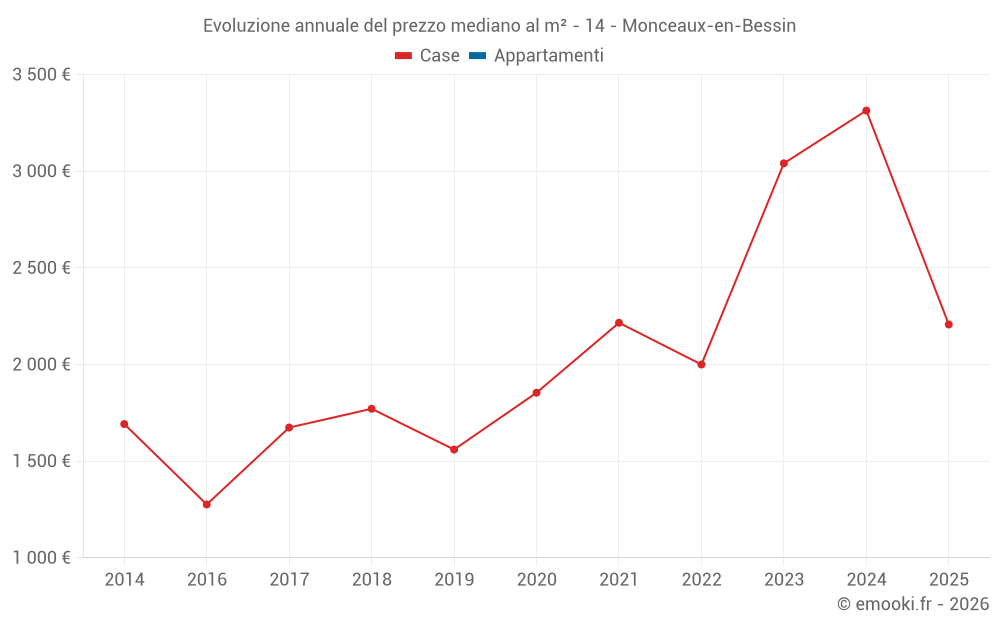 Evoluzione del prezzo mediano al m² degli appartamenti