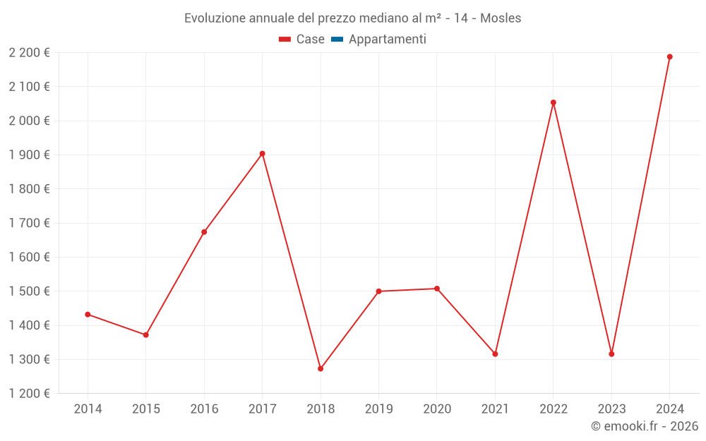 Evoluzione del prezzo mediano al m² degli appartamenti