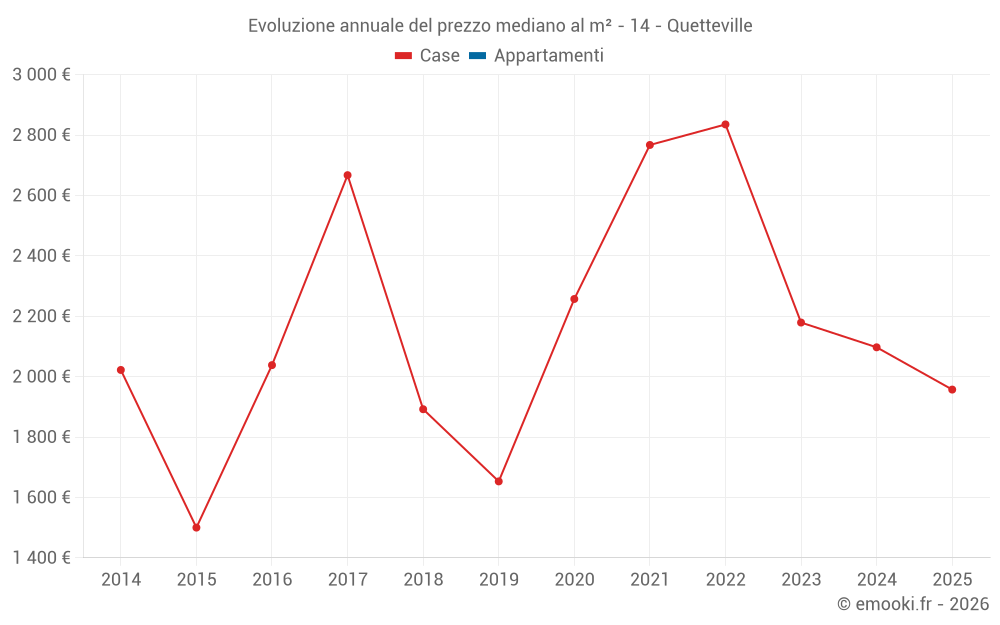Il prezzo al m² delle case è diminuito del 31% da 3 anni, ma è aumentato del 30% in 10 anni.