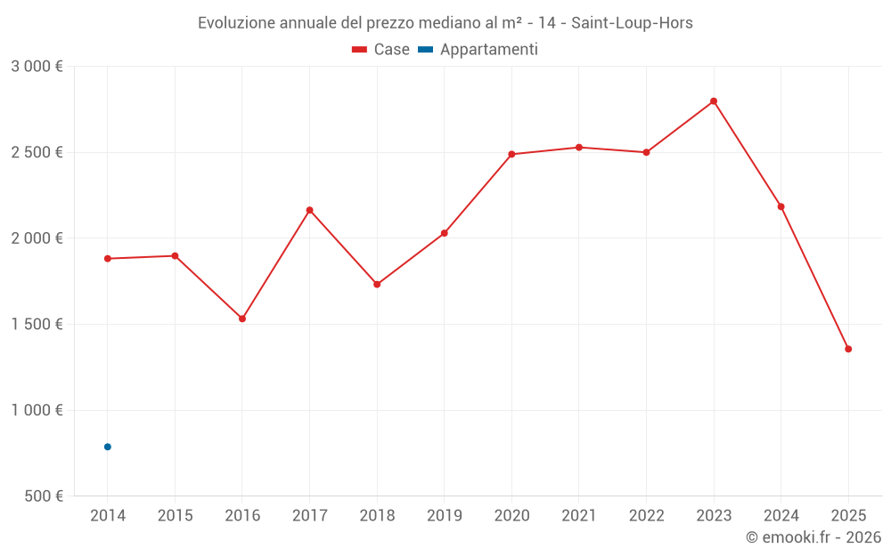 Evoluzione del prezzo mediano al m² degli appartamenti