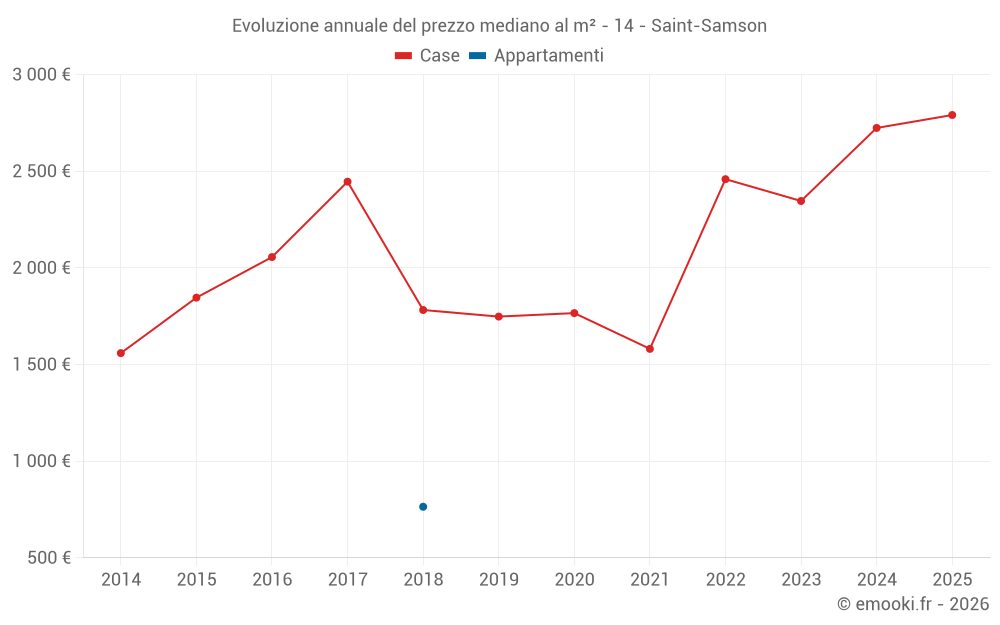 Evoluzione del prezzo mediano al m² degli appartamenti