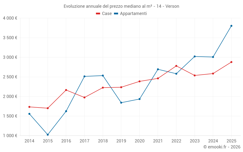 Qual è il prezzo al m2 delle case in Verson?