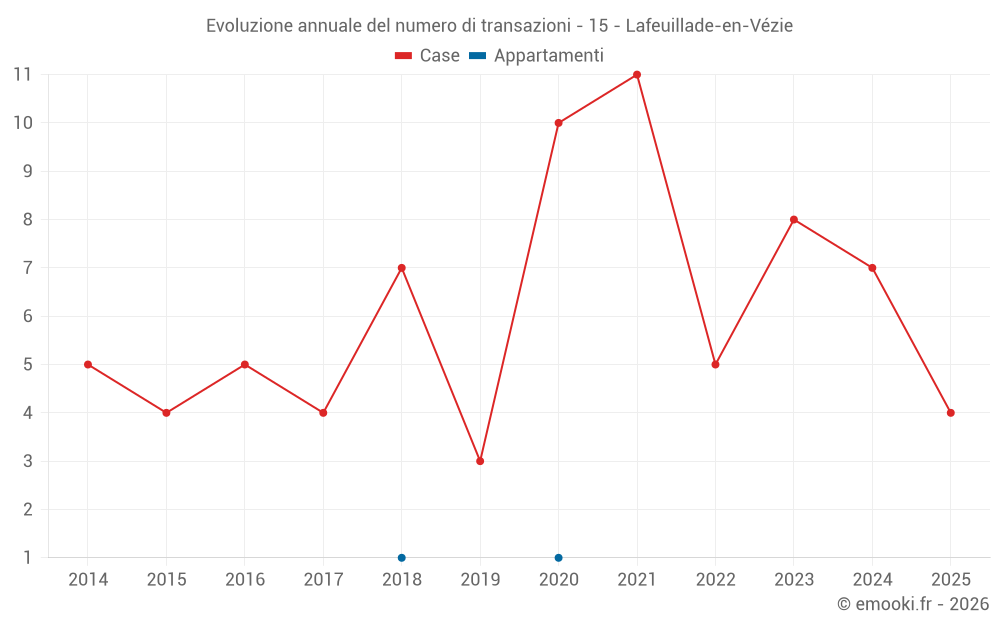 Il prezzo mediano sulle 15 transazioni di case degli ultimi 24 mesi nel comune di Lafeuillade-en-Vézie era di 1 788 € al metro quadrato per un valore patrimoniale mediano di 230 000 €. In questo periodo il 60% delle transazioni era tra 937 e 2 402 € al metro quadrato (dal 2° all'8° decile).