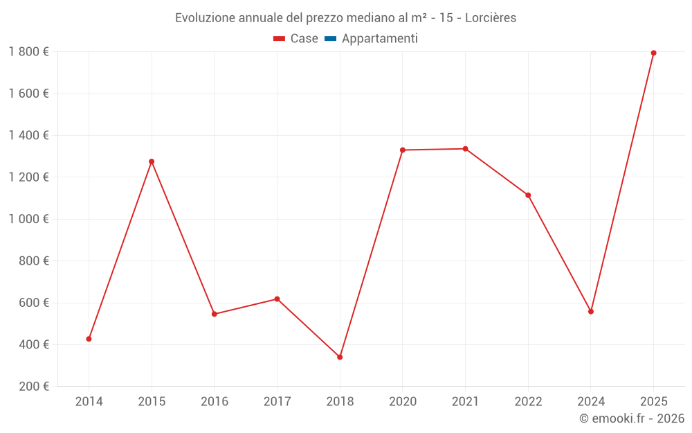 Evoluzione del prezzo mediano al m² degli appartamenti
