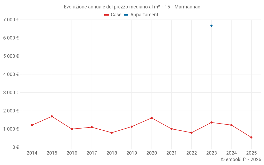 Il prezzo mediano sulle 15 transazioni di case degli ultimi 24 mesi nel comune di Marmanhac era di 1 205 € al metro quadrato per un valore patrimoniale mediano di 110 000 €. In questo periodo il 60% delle transazioni era tra 423 e 1 442 € al metro quadrato (dal 2° all'8° decile).