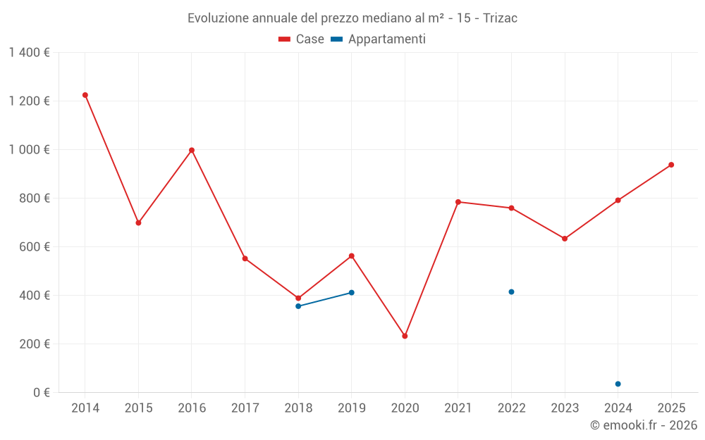 Il prezzo mediano sulle 22 transazioni di case degli ultimi 24 mesi nel comune di Trizac era di 644 € al metro quadrato per un valore patrimoniale mediano di 63 000 €. In questo periodo il 60% delle transazioni era tra 244 e 1 212 € al metro quadrato (dal 2° all'8° decile).