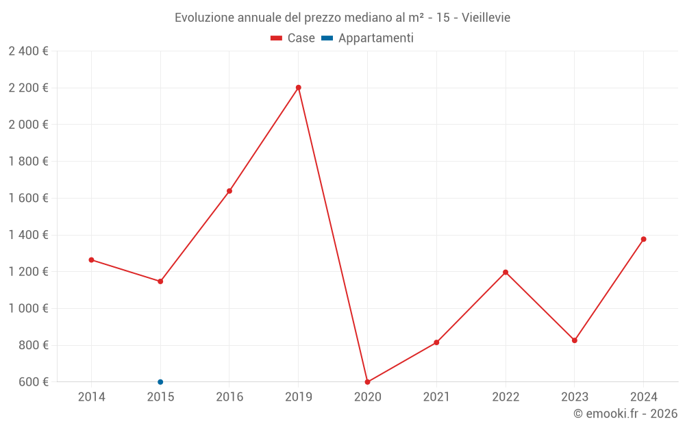 Evoluzione del prezzo mediano al m² degli appartamenti