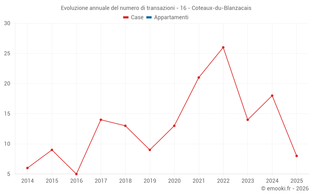 Il prezzo mediano sulle 17 transazioni di case degli ultimi 12 mesi nel comune di Coteaux-du-Blanzacais era di 975 € al metro quadrato per un valore patrimoniale mediano di 91 500 €. In questo periodo il 60% delle transazioni era tra 706 e 1 241 € al metro quadrato (dal 2° all'8° decile).
