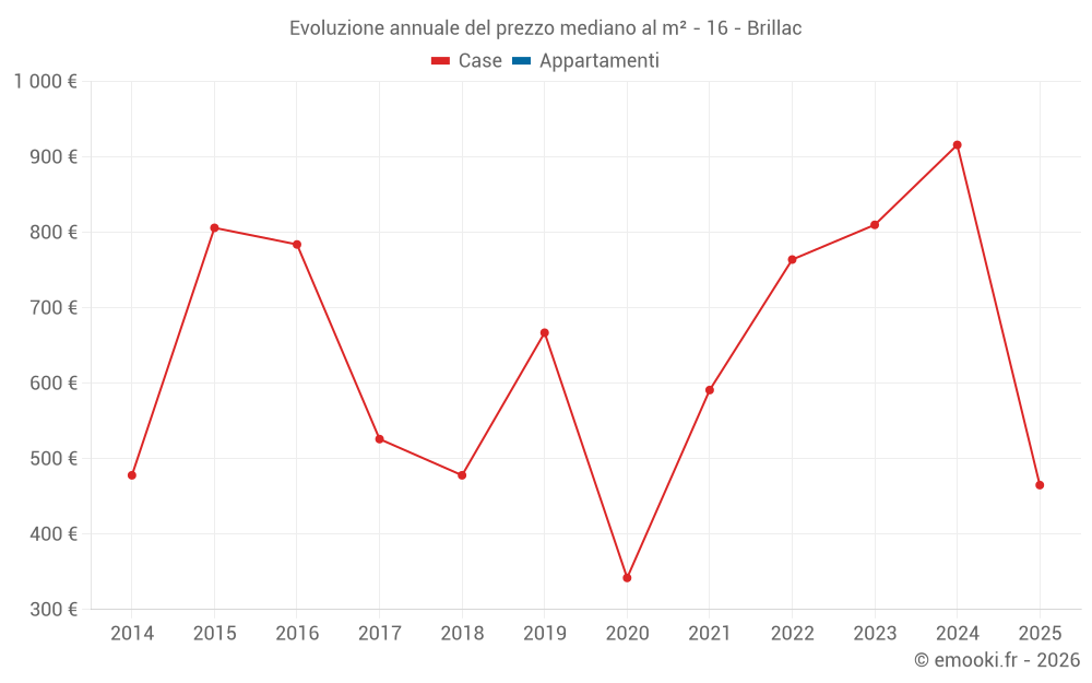 Il prezzo mediano sulle 26 transazioni di case degli ultimi 24 mesi nel comune di Brillac era di 872 € al metro quadrato per un valore patrimoniale mediano di 79 700 €. In questo periodo il 60% delle transazioni era tra 435 e 1 253 € al metro quadrato (dal 2° all'8° decile).