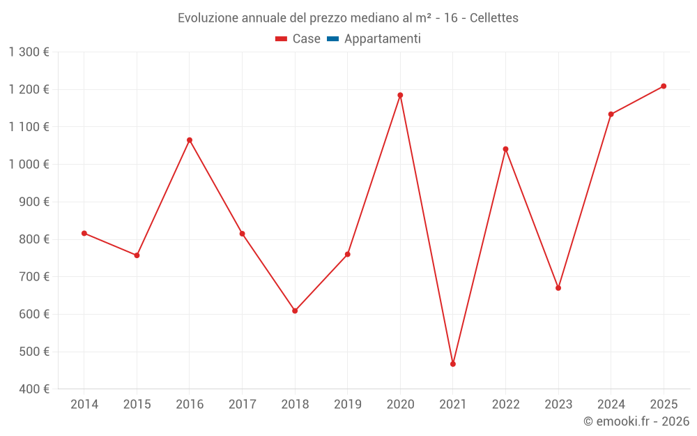 Il prezzo mediano sulle 20 transazioni di case degli ultimi 24 mesi nel comune di Cellettes era di 1 010 € al metro quadrato per un valore patrimoniale mediano di 103 490 €. In questo periodo il 60% delle transazioni era tra 634 e 1 583 € al metro quadrato (dal 2° all'8° decile).