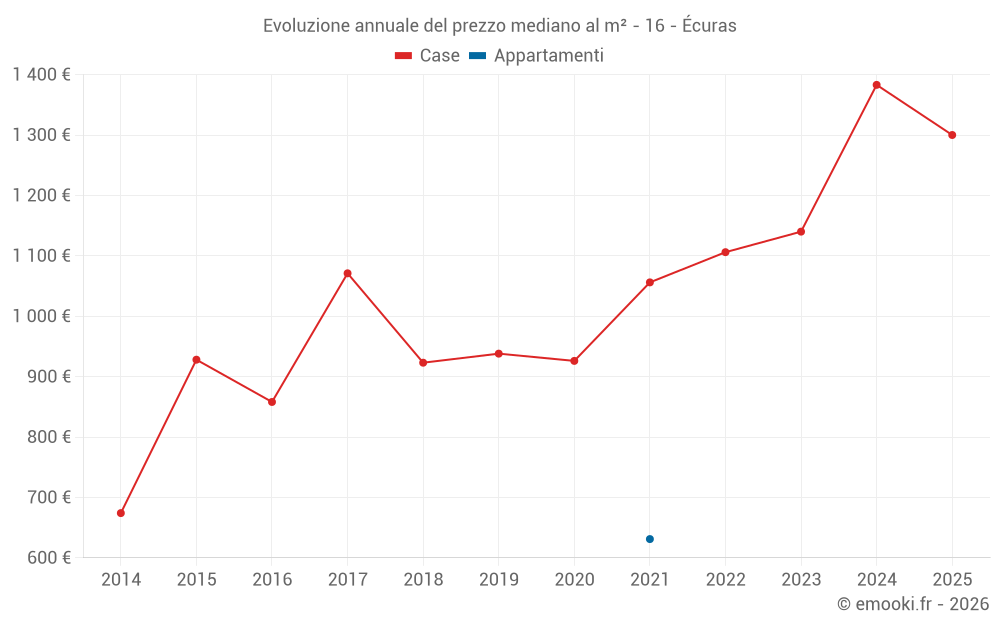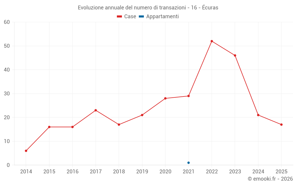 Il prezzo mediano sulle 26 transazioni di case degli ultimi 12 mesi nel comune di Écuras era di 1 390 € al metro quadrato per un valore patrimoniale mediano di 106 140 €. In questo periodo il 60% delle transazioni era tra 817 e 1 729 € al metro quadrato (dal 2° all'8° decile).