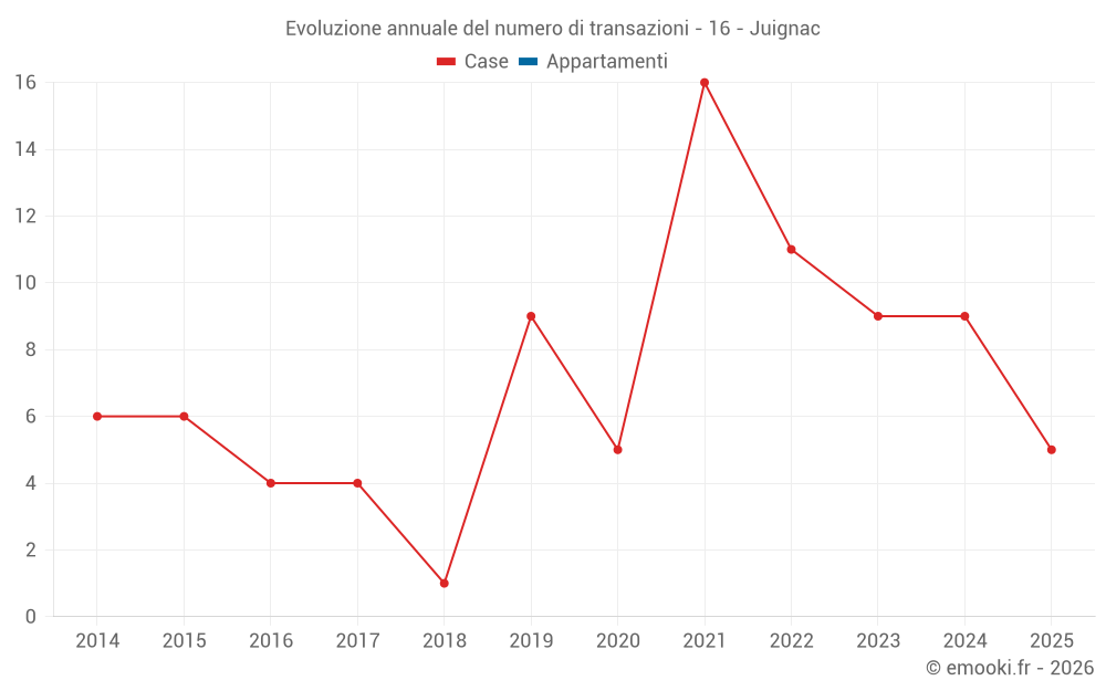 Il prezzo mediano sulle 20 transazioni di case degli ultimi 24 mesi nel comune di Juignac era di 1 172 € al metro quadrato per un valore patrimoniale mediano di 90 000 €. In questo periodo il 60% delle transazioni era tra 788 e 1 707 € al metro quadrato (dal 2° all'8° decile).