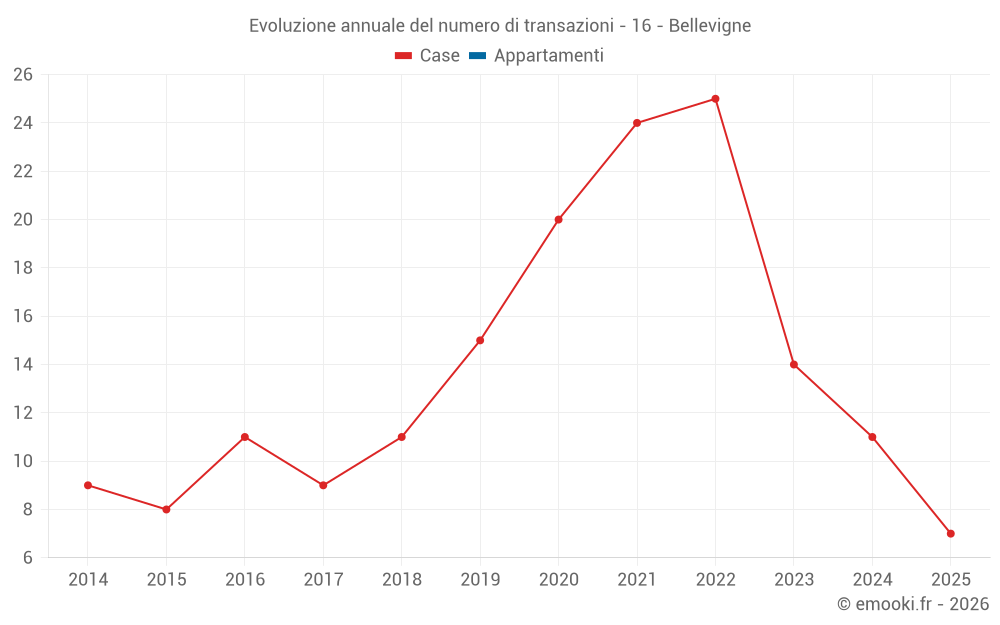 Il prezzo mediano sulle 26 transazioni di case degli ultimi 24 mesi nel comune di Bellevigne era di 1 268 € al metro quadrato per un valore patrimoniale mediano di 137 450 €. In questo periodo il 60% delle transazioni era tra 870 e 1 769 € al metro quadrato (dal 2° all'8° decile).