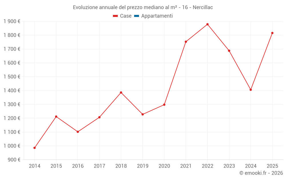Il prezzo mediano sulle 18 transazioni di case degli ultimi 24 mesi nel comune di Nercillac era di 1 683 € al metro quadrato per un valore patrimoniale mediano di 177 025 €. In questo periodo il 60% delle transazioni era tra 1 026 e 2 284 € al metro quadrato (dal 2° all'8° decile).