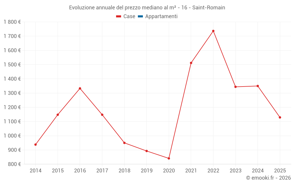 Evoluzione del prezzo mediano al m² degli appartamenti