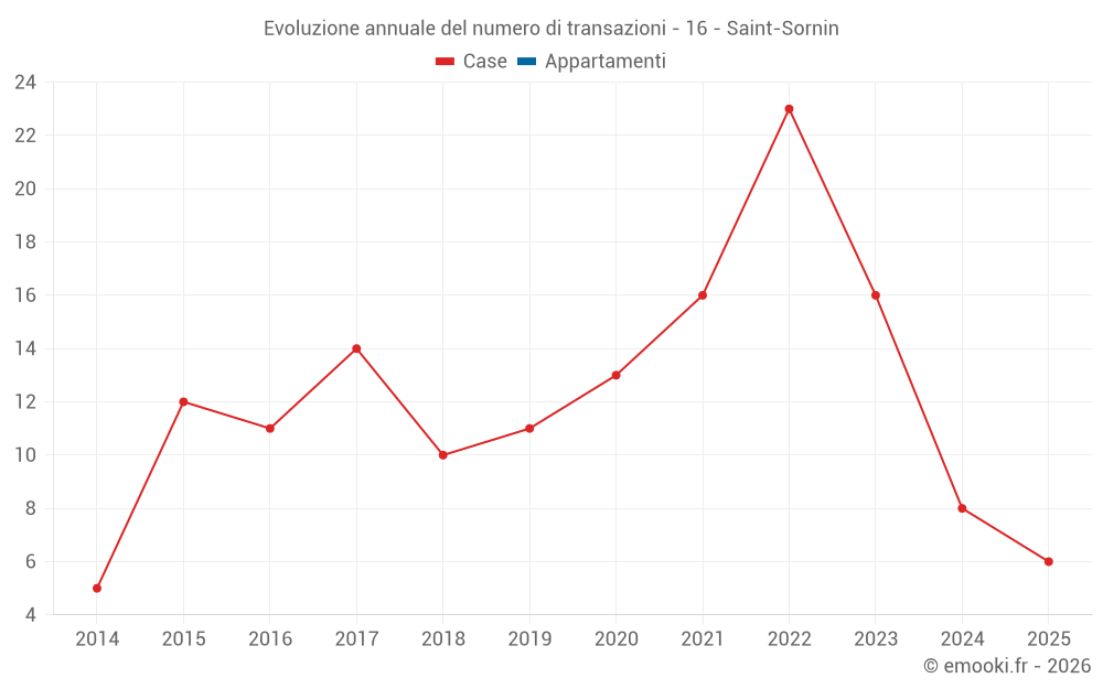 Il prezzo mediano sulle 24 transazioni di case degli ultimi 24 mesi nel comune di Saint-Sornin era di 1 610 € al metro quadrato per un valore patrimoniale mediano di 164 150 €. In questo periodo il 60% delle transazioni era tra 951 e 2 029 € al metro quadrato (dal 2° all'8° decile).