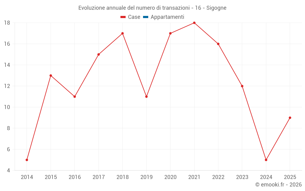 Il prezzo mediano sulle 19 transazioni di case degli ultimi 24 mesi nel comune di Sigogne era di 1 217 € al metro quadrato per un valore patrimoniale mediano di 130 233 €. In questo periodo il 60% delle transazioni era tra 706 e 1 731 € al metro quadrato (dal 2° all'8° decile).