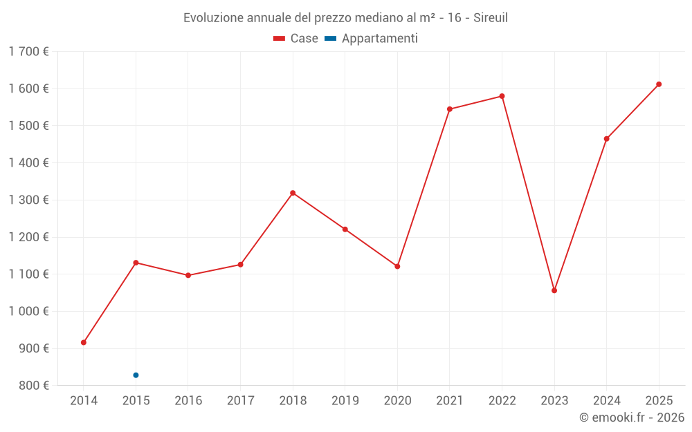 Il prezzo mediano sulle 17 transazioni di case degli ultimi 12 mesi nel comune di Sireuil era di 1 610 € al metro quadrato per un valore patrimoniale mediano di 155 000 €. In questo periodo il 60% delle transazioni era tra 1 284 e 2 037 € al metro quadrato (dal 2° all'8° decile).