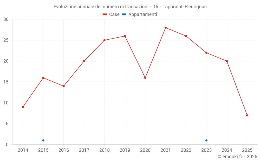 Il prezzo mediano sulle 19 transazioni di case degli ultimi 12 mesi nel comune di Taponnat-Fleurignac era di 1 599 € al metro quadrato per un valore patrimoniale mediano di 156 100 €. In questo periodo il 60% delle transazioni era tra 1 201 e 1 967 € al metro quadrato (dal 2° all'8° decile).
