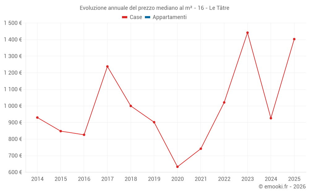 Evoluzione del prezzo mediano al m² degli appartamenti