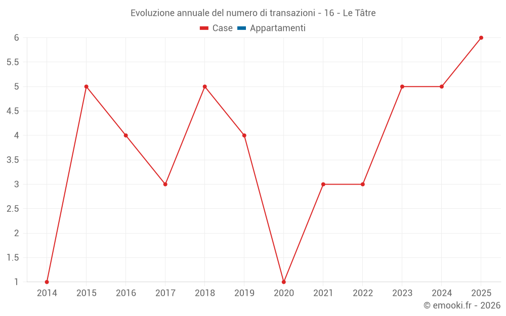 Il prezzo al m² delle case è diminuito del 1.6% da 2 anni, ma è aumentato del 72% in 9 anni.