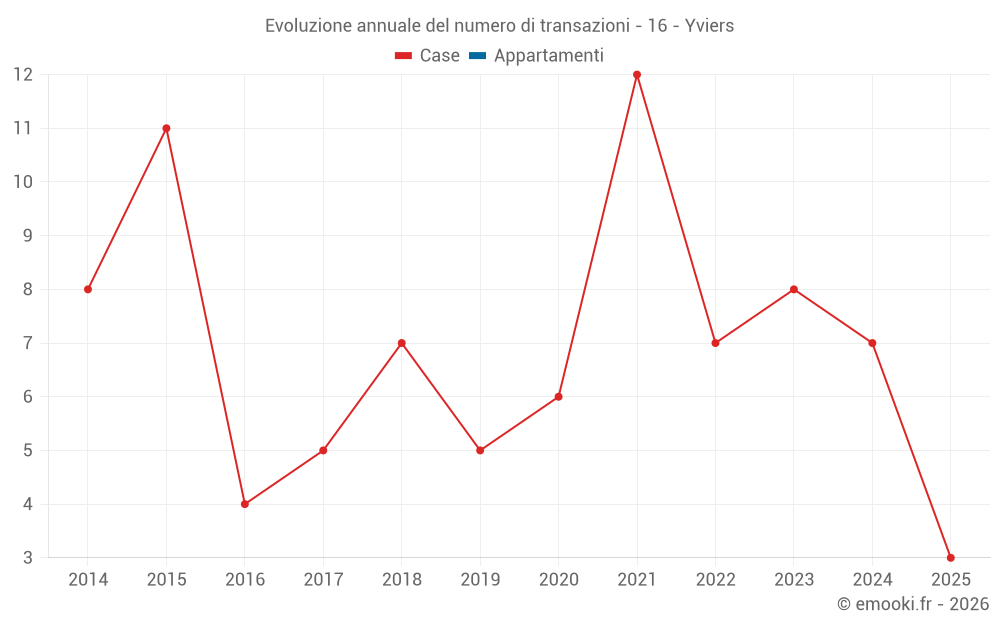 Il prezzo mediano sulle 16 transazioni di case degli ultimi 24 mesi nel comune di Yviers era di 1 390 € al metro quadrato per un valore patrimoniale mediano di 134 875 €. In questo periodo il 60% delle transazioni era tra 556 e 1 700 € al metro quadrato (dal 2° all'8° decile).