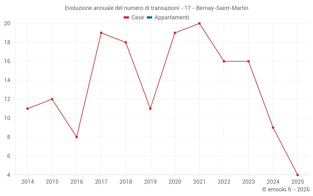 Il prezzo mediano sulle 19 transazioni di case degli ultimi 24 mesi nel comune di Bernay-Saint-Martin era di 1 270 € al metro quadrato per un valore patrimoniale mediano di 101 382 €. In questo periodo il 60% delle transazioni era tra 1 006 e 1 489 € al metro quadrato (dal 2° all'8° decile).