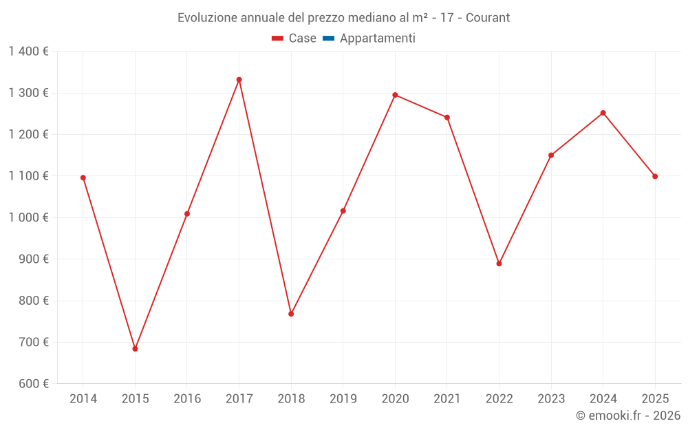 Evoluzione del prezzo mediano al m² degli appartamenti