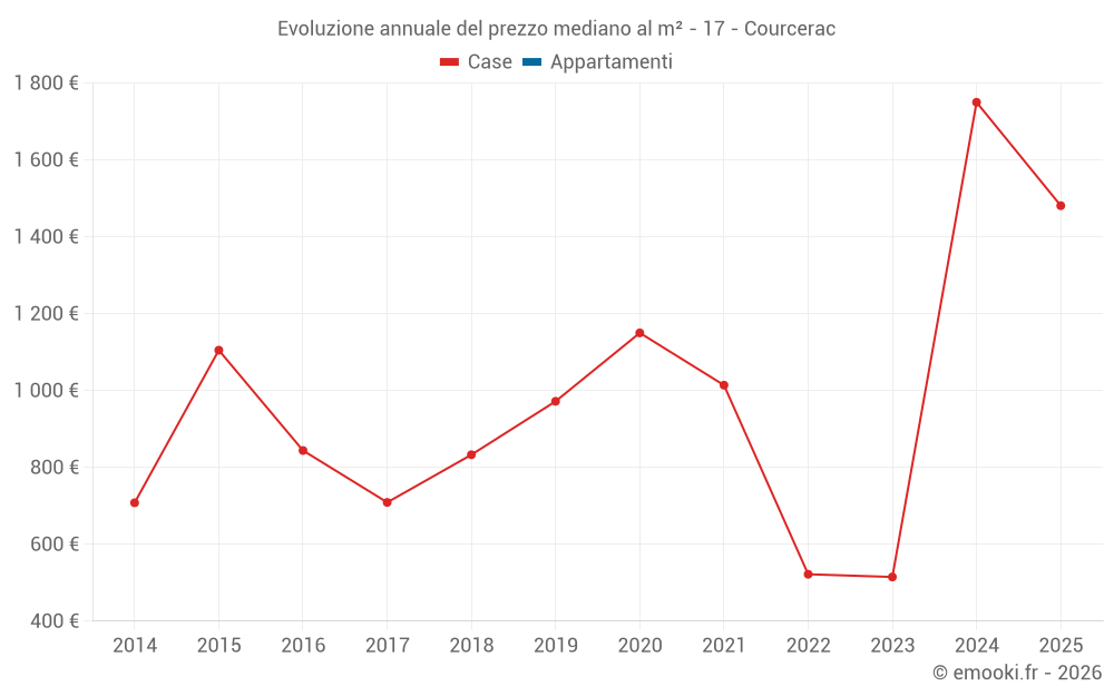 Evoluzione del prezzo mediano al m² degli appartamenti