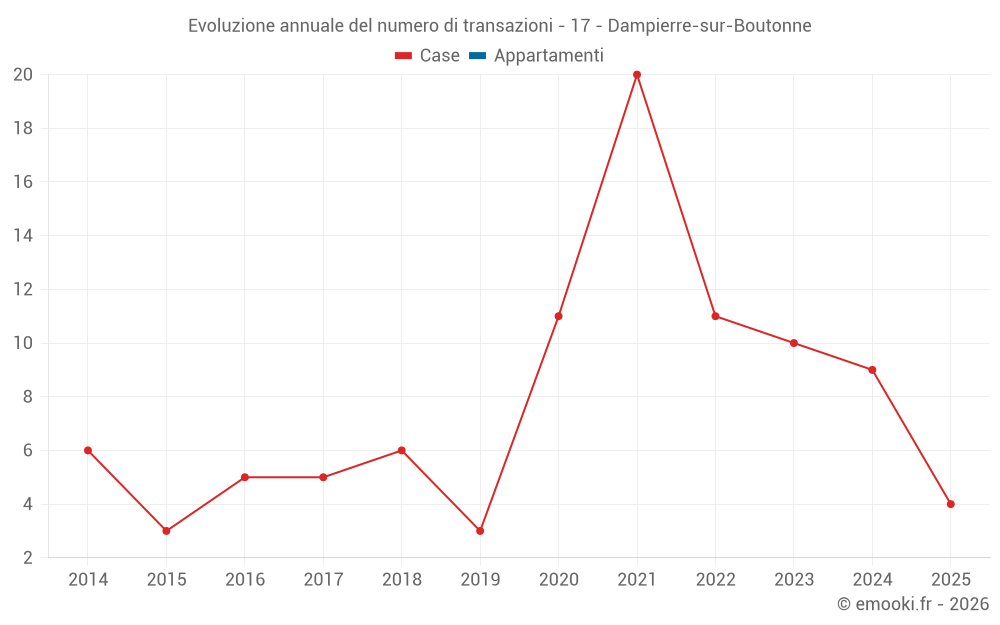 Il prezzo mediano sulle 19 transazioni di case degli ultimi 24 mesi nel comune di Dampierre-sur-Boutonne era di 1 304 € al metro quadrato per un valore patrimoniale mediano di 120 000 €. In questo periodo il 60% delle transazioni era tra 638 e 1 708 € al metro quadrato (dal 2° all'8° decile).