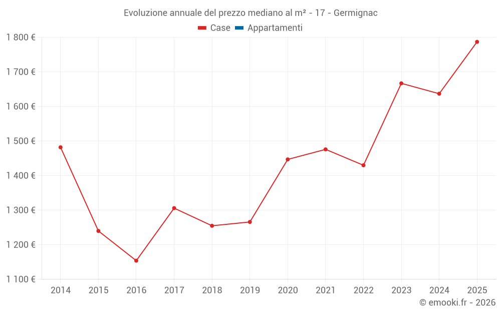 Evoluzione del prezzo mediano al m² degli appartamenti