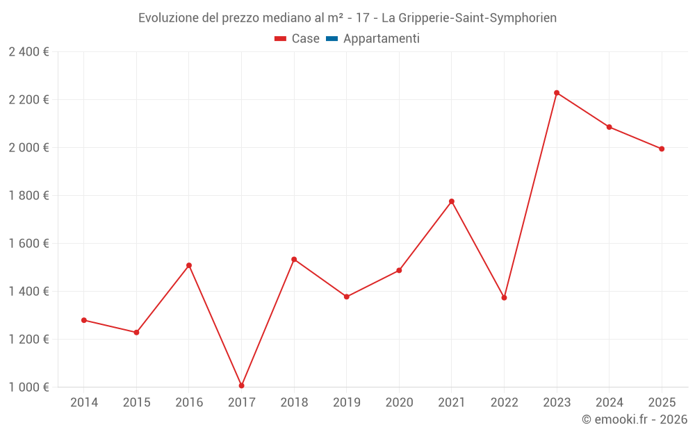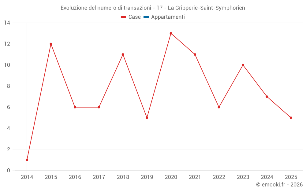 Il prezzo mediano sulle 17 transazioni di case degli ultimi 24 mesi nel comune di La Gripperie-Saint-Symphorien era di 2 086 € al metro quadrato per un valore patrimoniale mediano di 210 000 €. In questo periodo il 60% delle transazioni era tra 1 589 e 2 524 € al metro quadrato (dal 2° all'8° decile).