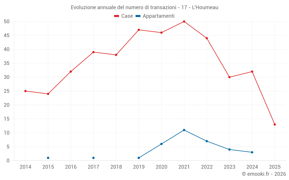 Il prezzo mediano sulle 25 transazioni di case degli ultimi 12 mesi nel comune di L'Houmeau era di 3 684 € al metro quadrato per un valore patrimoniale mediano di 390 000 €. In questo periodo il 60% delle transazioni era tra 2 627 e 4 382 € al metro quadrato (dal 2° all'8° decile).