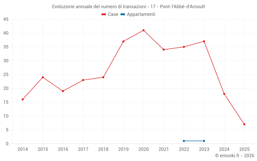 Il prezzo mediano sulle 19 transazioni di case degli ultimi 12 mesi nel comune di Pont-l'Abbé-d'Arnoult era di 2 093 € al metro quadrato per un valore patrimoniale mediano di 193 390 €. In questo periodo il 60% delle transazioni era tra 1 439 e 2 423 € al metro quadrato (dal 2° all'8° decile).