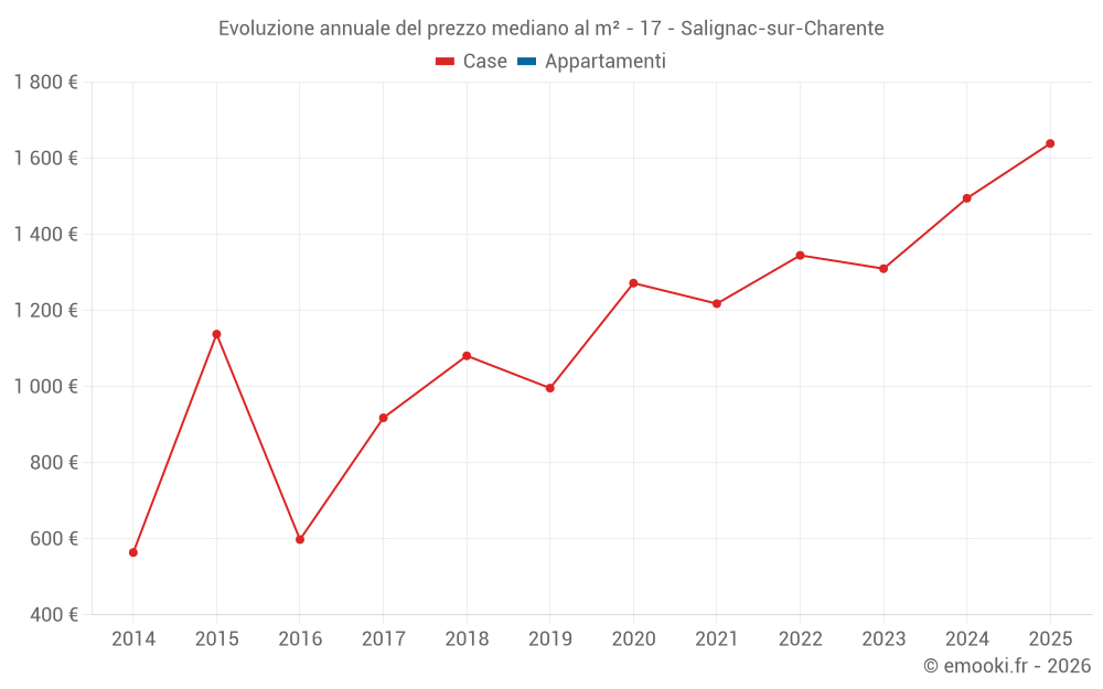 Evoluzione del prezzo mediano al m² degli appartamenti