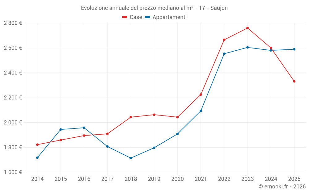 Qual è il prezzo al m2 degli appartamenti in Saujon?