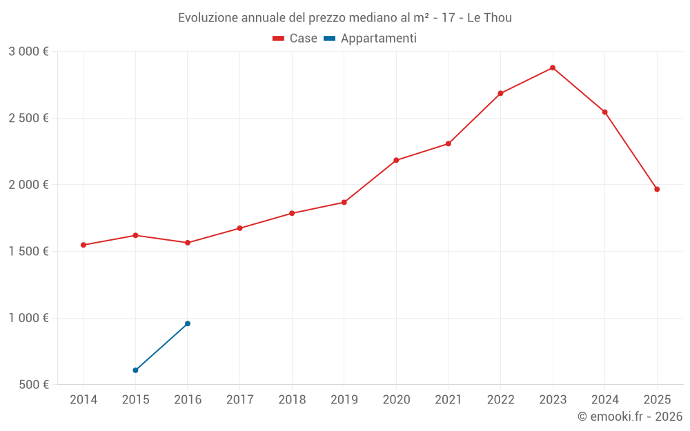 Il prezzo mediano sulle 22 transazioni di case degli ultimi 12 mesi nel comune di Le Thou era di 2 440 € al metro quadrato per un valore patrimoniale mediano di 211 100 €. In questo periodo il 60% delle transazioni era tra 1 206 e 2 953 € al metro quadrato (dal 2° all'8° decile).