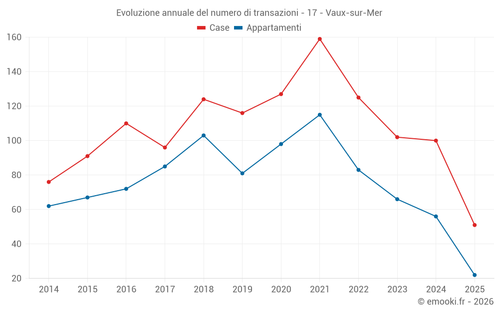 Il prezzo mediano sulle 22 transazioni di appartamenti degli ultimi 6 mesi nel comune di Vaux-sur-Mer era di 4 968 € al metro quadrato per un valore patrimoniale mediano di 170 397 €. In questo periodo il 60% delle transazioni era tra 3 872 e 5 410 € al metro quadrato (dal 2° all'8° decile).