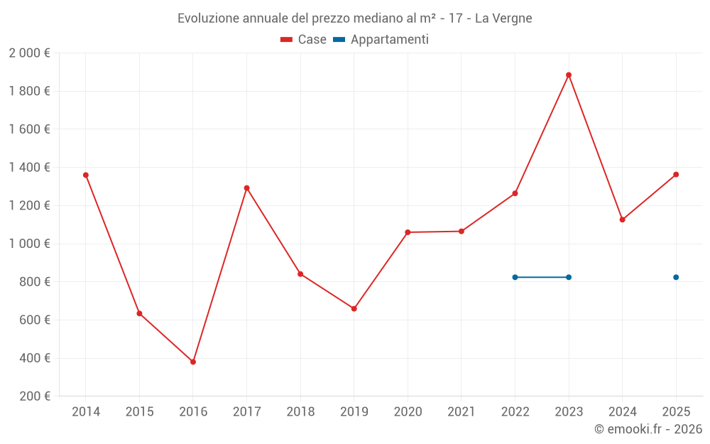 Evoluzione annuale del prezzo mediano al m²