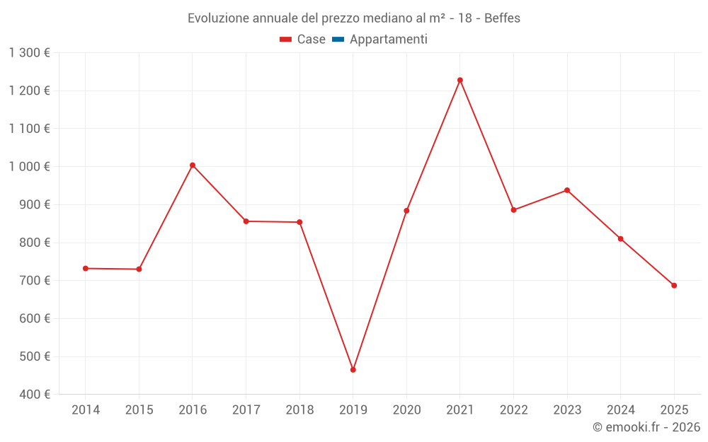 Il prezzo mediano sulle 15 transazioni di case degli ultimi 24 mesi nel comune di Beffes era di 799 € al metro quadrato per un valore patrimoniale mediano di 65 000 €. In questo periodo il 60% delle transazioni era tra 378 e 1 233 € al metro quadrato (dal 2° all'8° decile).