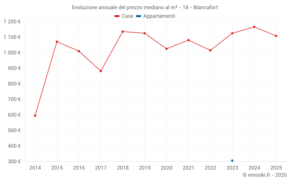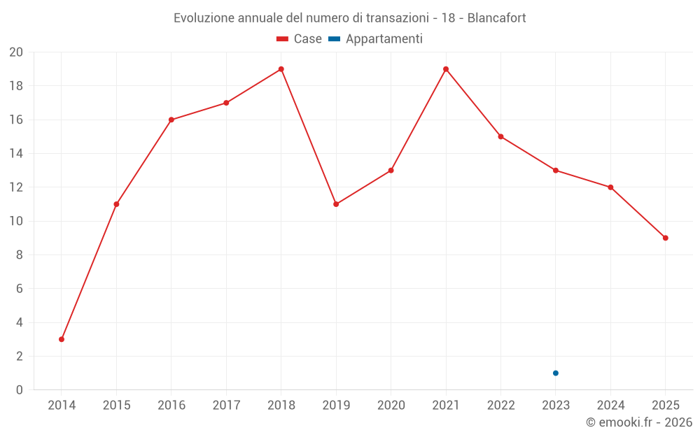 Il prezzo mediano sulle 28 transazioni di case degli ultimi 24 mesi nel comune di Blancafort era di 1 116 € al metro quadrato per un valore patrimoniale mediano di 90 500 €. In questo periodo il 60% delle transazioni era tra 517 e 1 422 € al metro quadrato (dal 2° all'8° decile).
