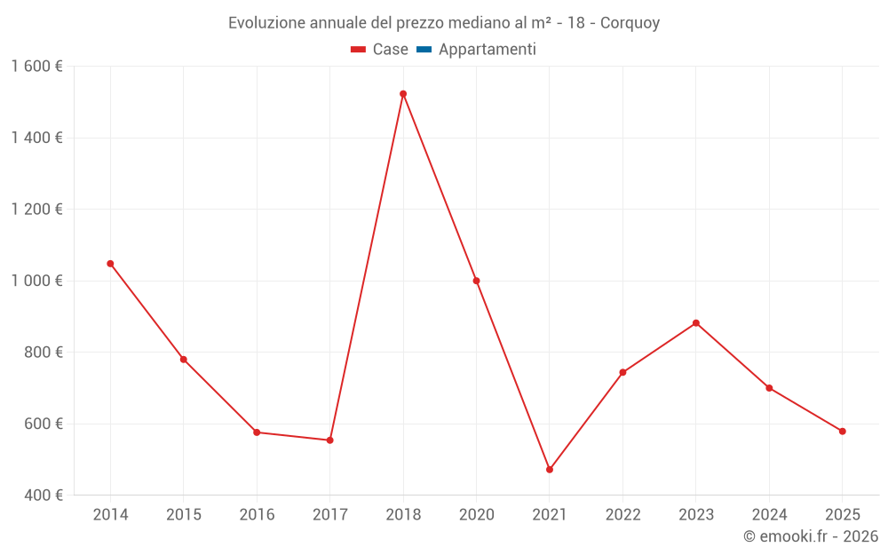 Evoluzione del prezzo mediano al m² degli appartamenti